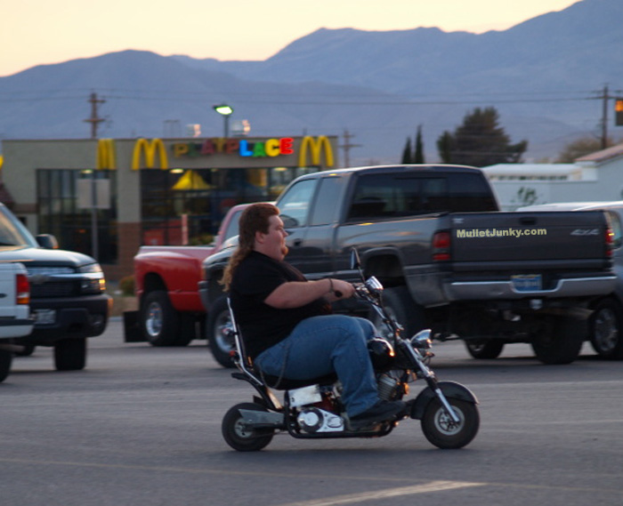Every 6 months or so a mullet submission will be sent in that is like no other. Like a piece of artwork that you can't take your eyes off of. I haven't updated the site in a while because i was not blown away until now. There is SO much going on here; Overweight, young, red haired mullet on a modified moped cruising in a ghetto Mcdonalds Parking lot. It rarely gets better than this.