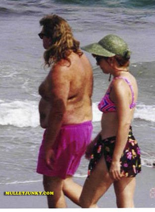 A general lack of caring concerning looks/hygiene can lead to a sloppy exterior. Hairy back, manboobs and a ratty, nested mullet is the result. Keep in mind this is ONLY the exterior, inside this slop, i'm sure is a kind, warm, friendly mull who likes to spend quality time aimlessly staggering the streets....or beaches, pondering his life, relationships and world views. * God I'm optimistic. |
