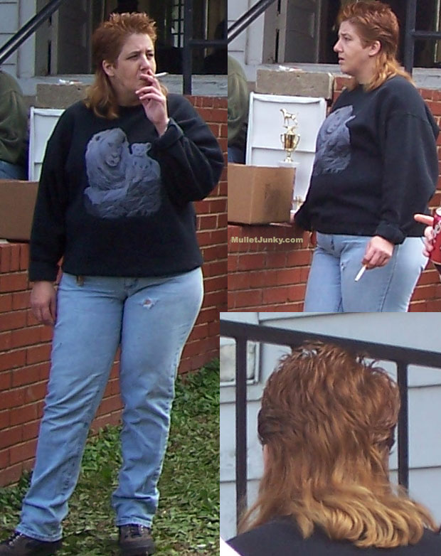 Do You understand how perfect this hunt is? First, there are 3 separate photo's all showing different angles of this beauty. Now examine the details: A sweater with a lion and 2 cubs. Next, she is smoking like she means it. Finally, look at the far left pic. See her lower half, she's got the triangle going. Keys dangling, a hole in the jeans and a sexy camel toe to go. It's kind of like the holy trinity for Lezos. The trophy on the box is pretty sweet. She's a trophy Mullethunt and her home rests on mulletjunky.com forever! Happy new year! |