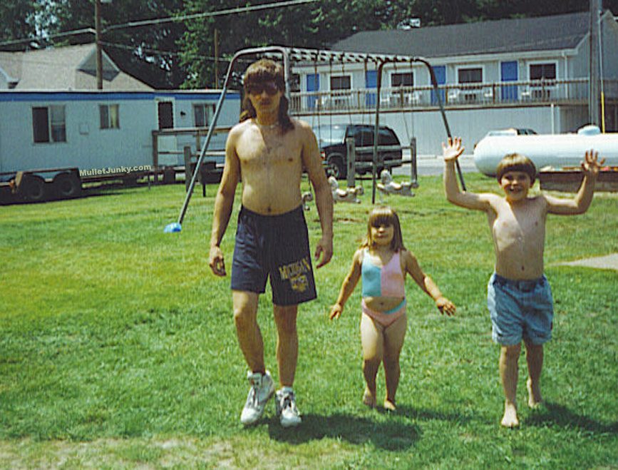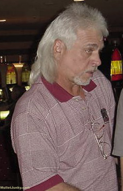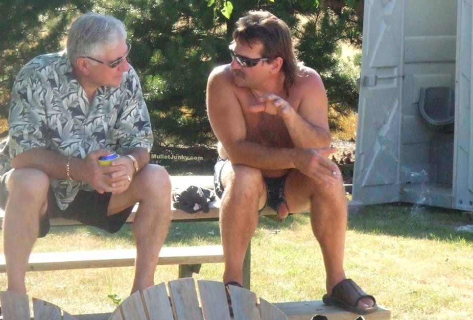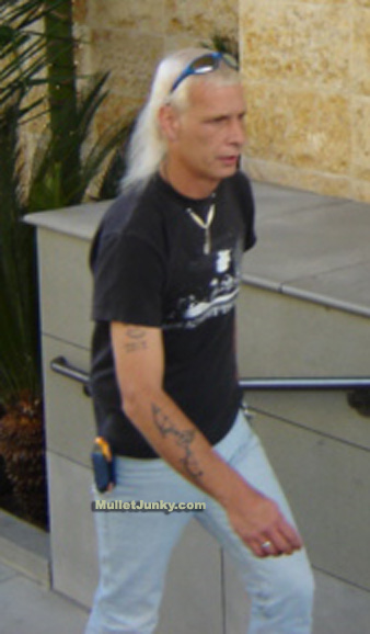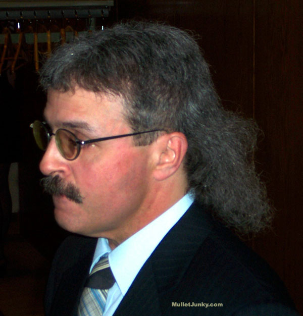 The haircut with a duel function: Business on top, and a raging party out back. We see many middle aged men opting for this symbolic cut. They want the best of both worlds. A respectable job during the week, then go nuts on the weekend. We see 2 good examples of this: A kind of gray, wispy wooly mull, and the other a dyed permullet. It is a strange phenomenon and even stranger that both of these men look freakishly similar just with 2 completely different mullets. Common traits: