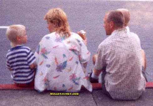 Mom, Dad, and the 2 kids; an ENTIRE family with mullets. Truly incredible. I know the pic is a little low qual, but you can definitely see they all have mullets (even the baby on the far right). This is the first documentation of anything of this kind. It's a big day for the mullet community...and Wal-Mart's clothing department. |
