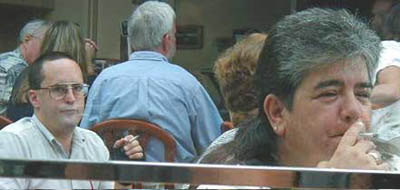I was in a parking lot when I spotted this beauty. I sprinted towards him and used the most dangerous of all techniques: the Guerilla. At first, he was a little defensive (as seen from the pic on the left). I kinda freaked out, so I just gave him a big cheesy smile. As you can tell, it worked like a charm. * In his native land, the mullet is worn as a sign of great achievement in society. Activities include evading the INS, setting a fried clam eating record, waving flaming sticks around and eating large chunks of animal flesh. |